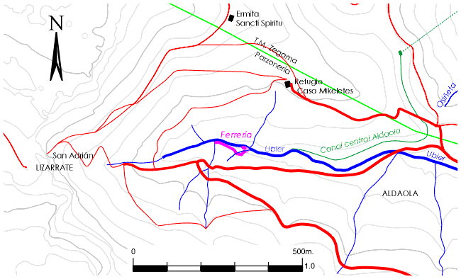 Esta ferrería tiene la particularidad de ser la única en Gipuzkoa que aprovechó aguas de la vertiente mediterránea.